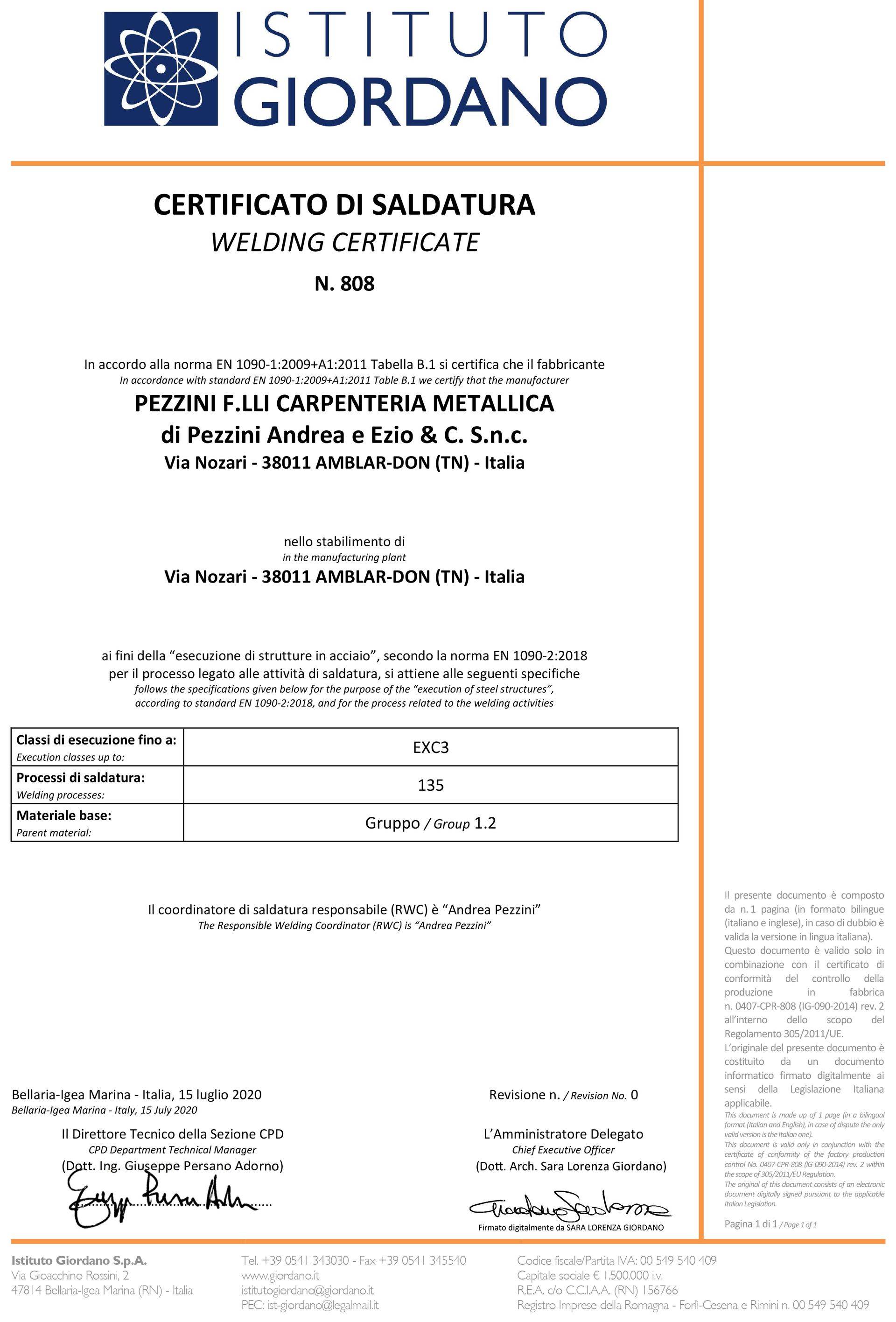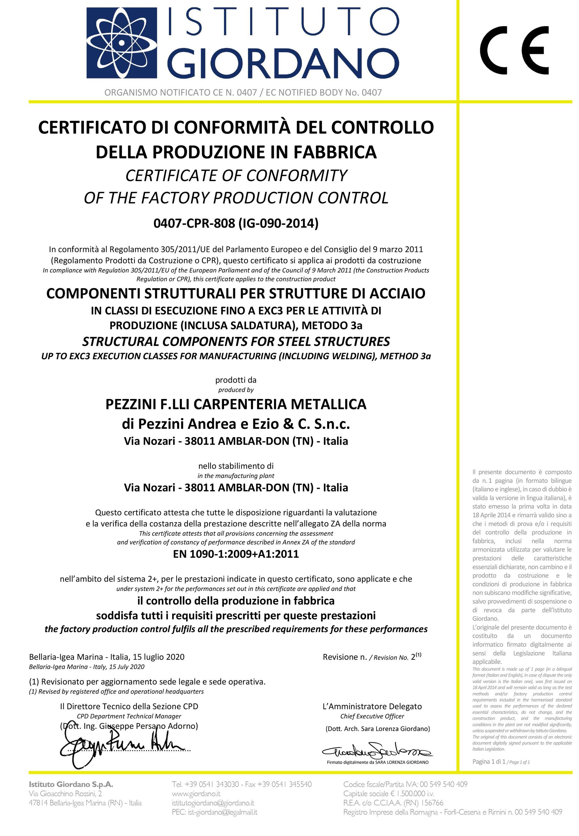 La nostra azienda è una delle prime in provincia ad avere ottenuto la certificazione secondo la normativa UNI EN 1090-1 fino alla classe EXC3. Questa certificazione rappresenta un importante riconoscimento della qualità e dell'efficienza dei nostri prodotti.